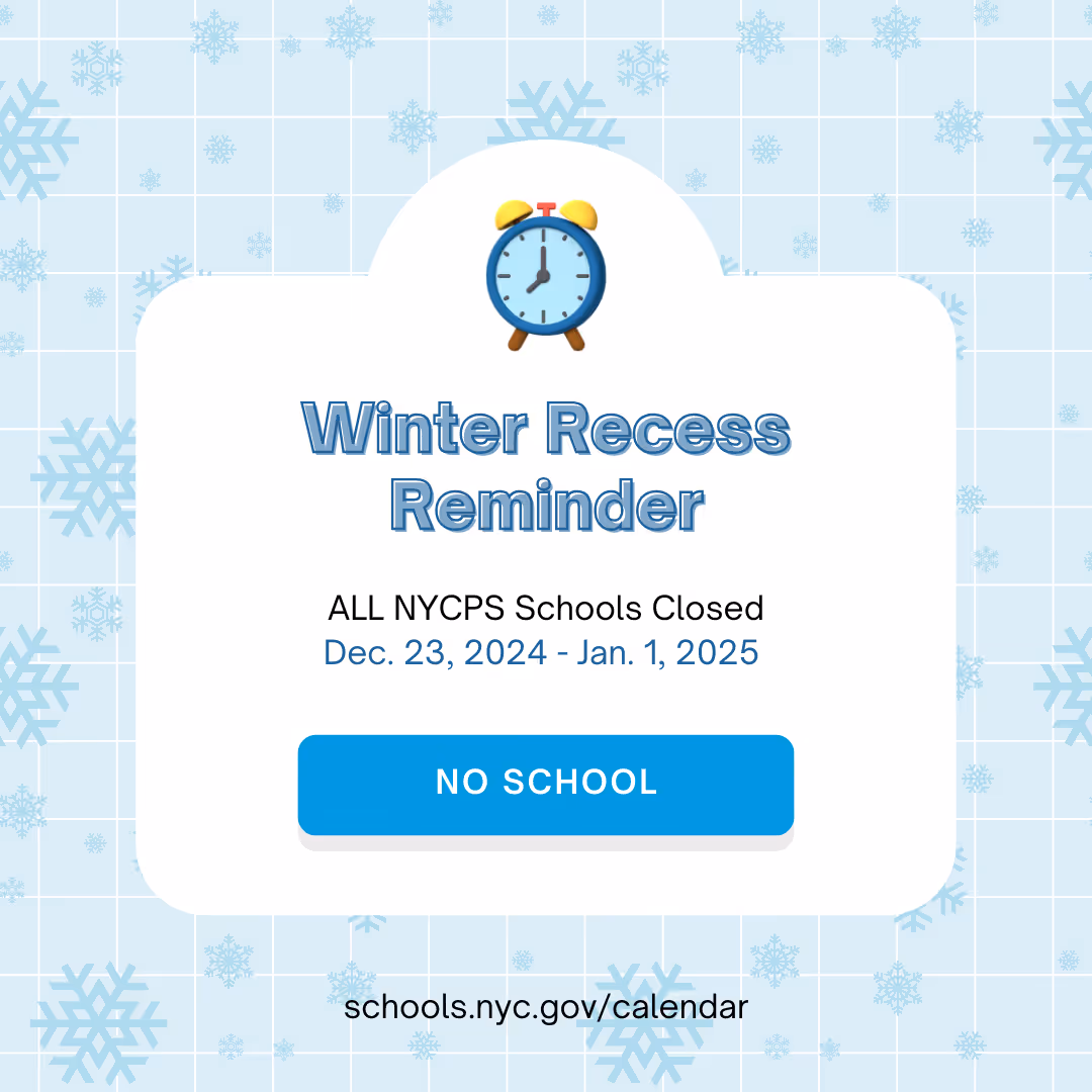 Clerical Day; no classes for students attending 3-K, Pre-K, elementary schools, middle schools, K–12 schools, and standalone D75 programs
